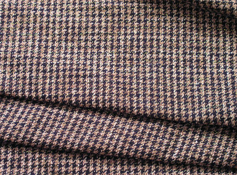 Tussah silk houndstooth.Black, tan, metallic gold. silk, lurex.2 1/2 yards @ 46" wide. Closer shot of fabric. |