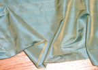 Indian Star silk. Aqua shot green with metallic gold. Silk & metallic fiber. 3 yards 3" @ 43 1/2" wide. Photo doesn't show shot quality at all or the depth of colour. |