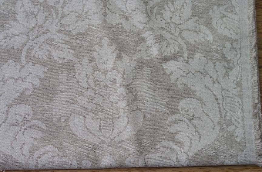 Linen & Cotton Damask (according to some definitions could be considered Fustian) Cream, taupe cotton & linen 6 yards 3" @ 55 1/2" wide Close-up |