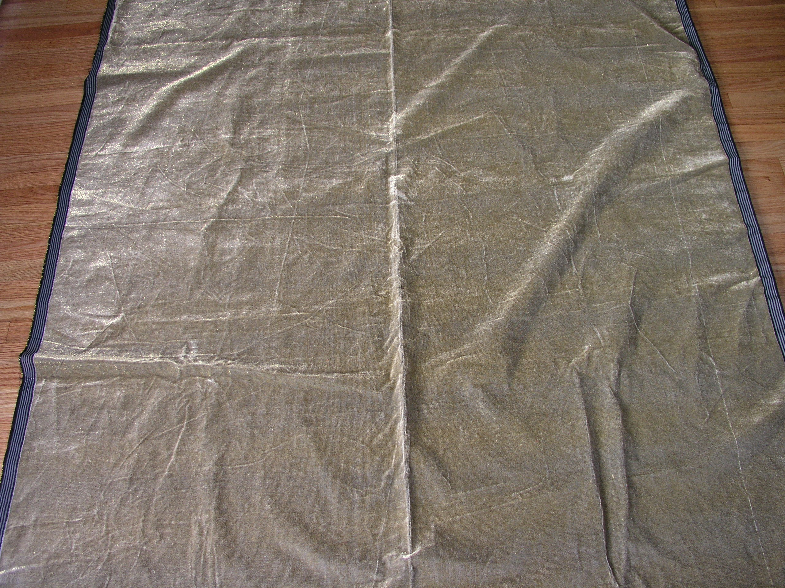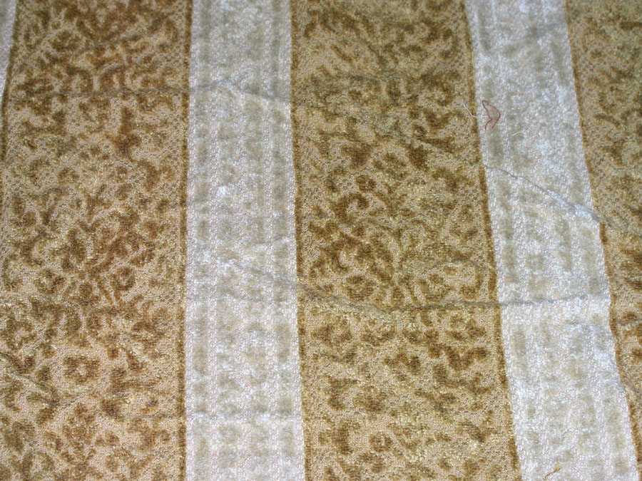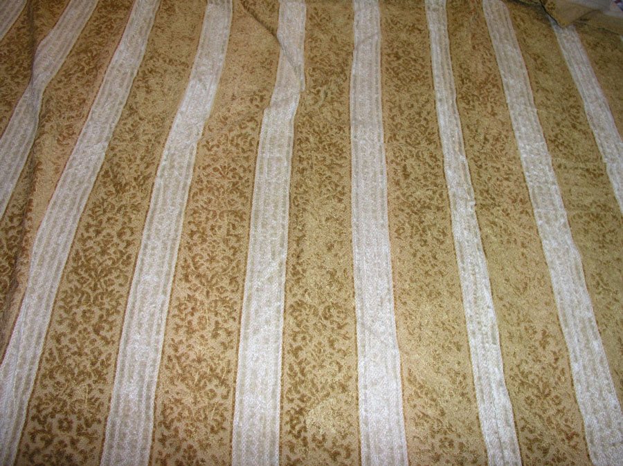 Voided velvet curtains Old gold, cream Cotton Piece 1: 2 yards 20" @ 1 yrd 31.5" wide Piece 2: 2 yards 20" @ 1 yard 34" wide Close-up |