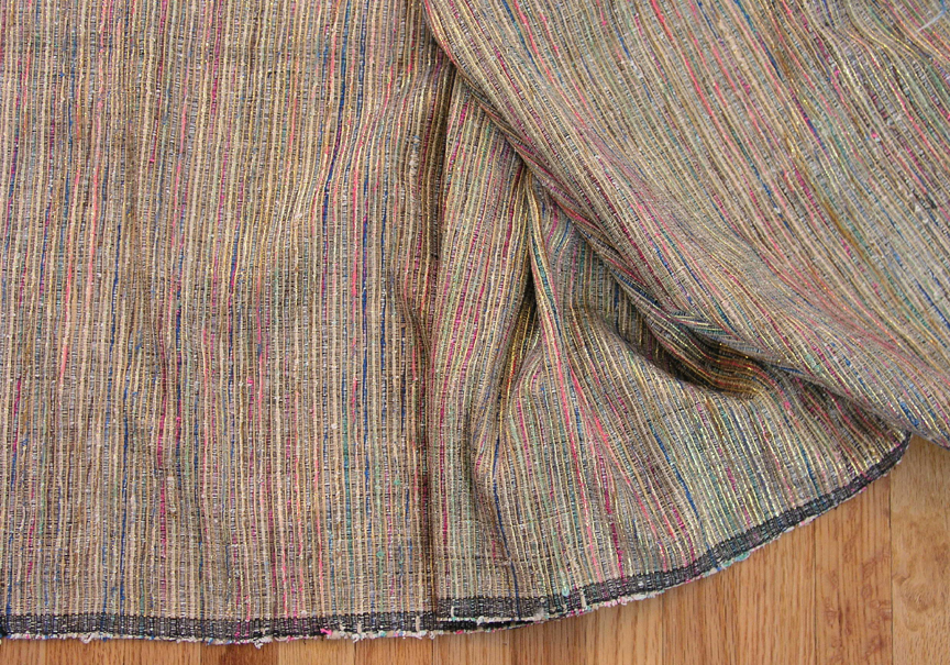 Metallic tussah silk. Off-white, pink, green, blue, yellow, metallic gold. Silk & metallic fiber. 3 yards 6" @ 49" wide. Close-up |