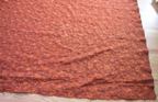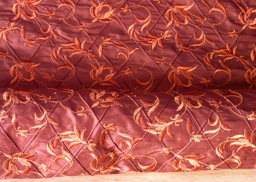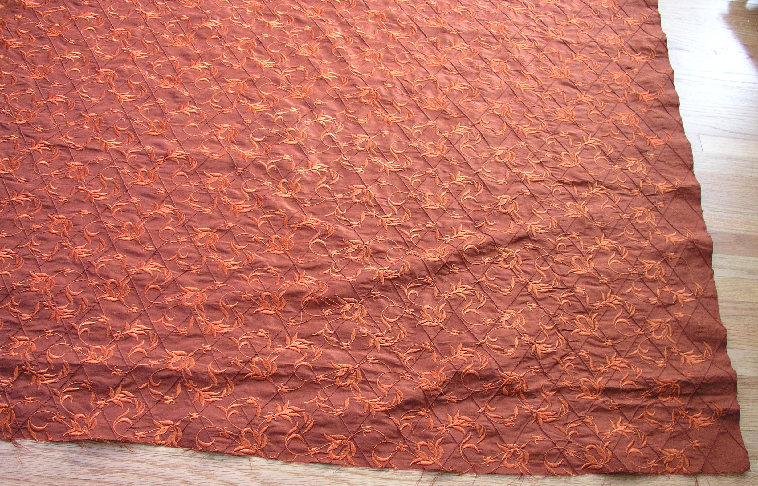 Embroidered pintucked silk. Burnt orange. Silk & rayon(?) embroidery thread. 4 yards 24" @ 51 1/2" wide. There is a slight random gradient in the colour of the embroidery Close-up |