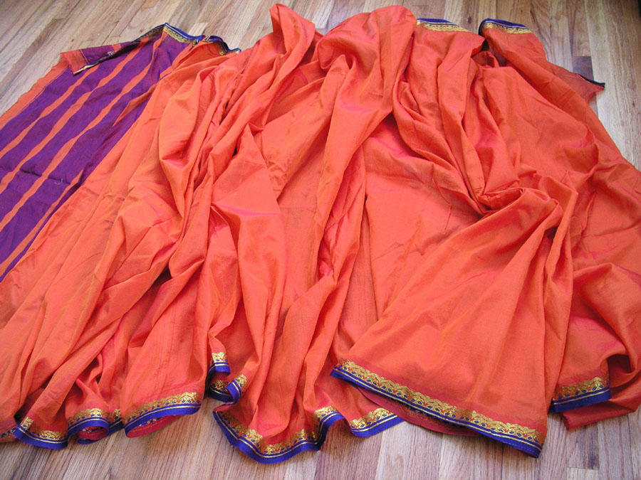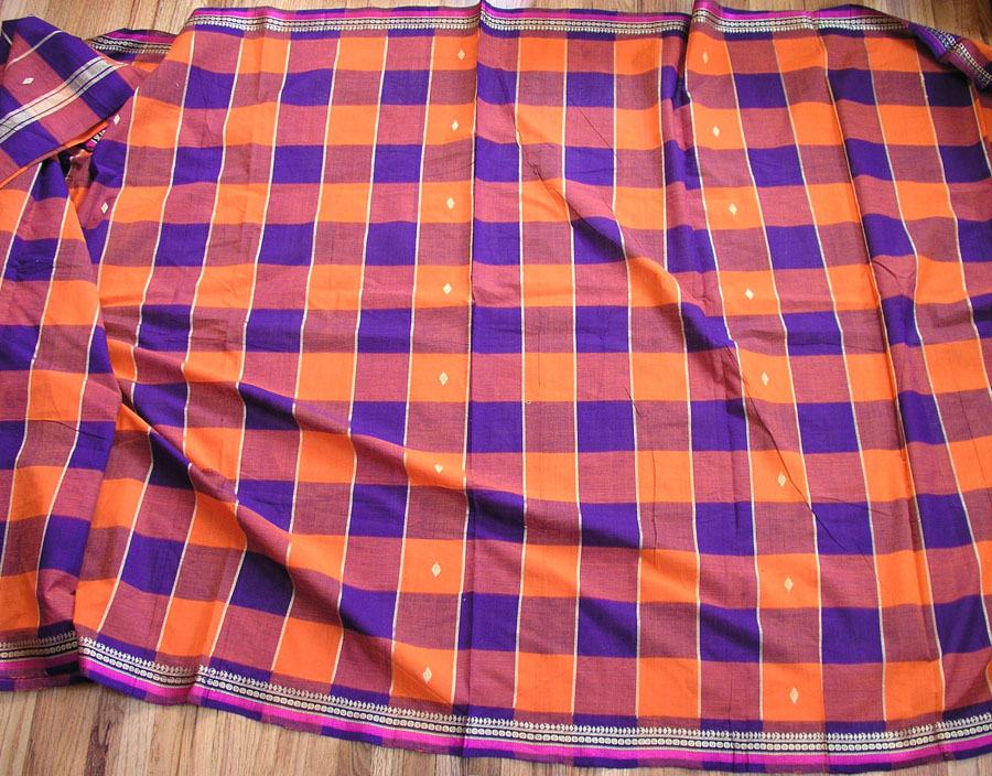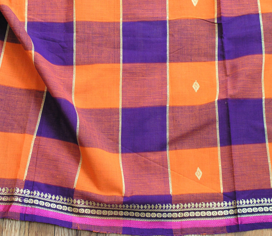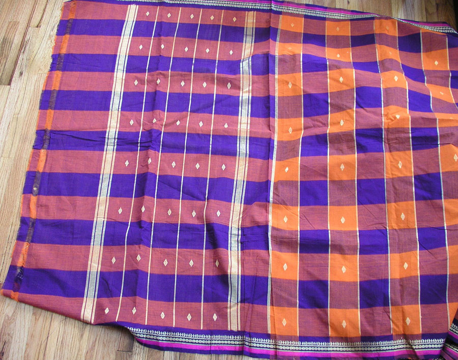 Violet and orange cotton. 5 yards 23". The choli piece is still