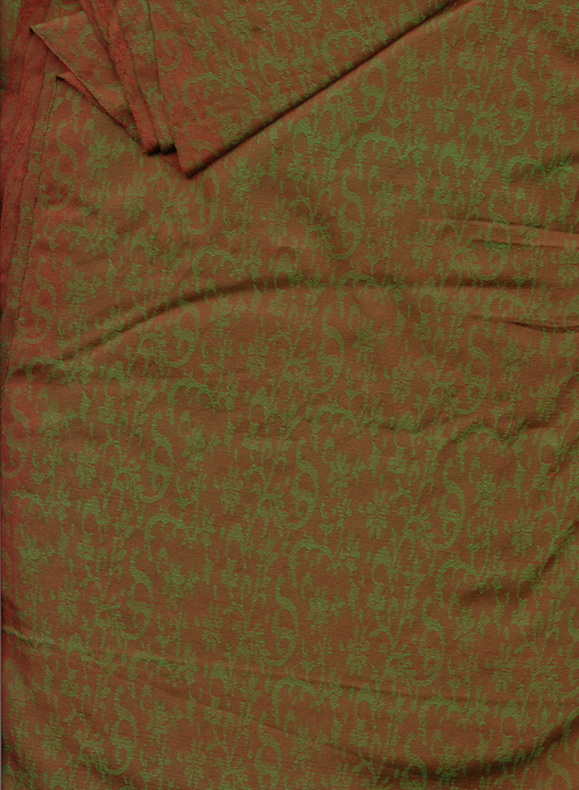 Indian floral silk. Red shot green. Silk. 3 yards 22 1/2". |