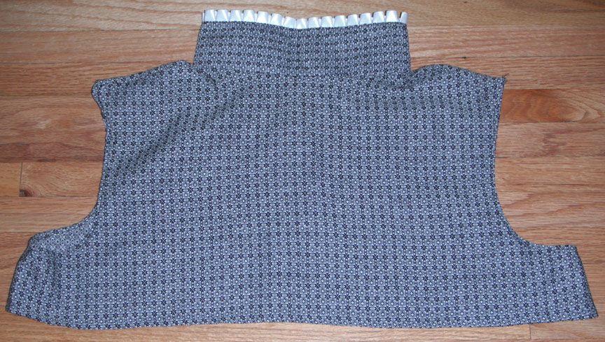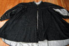 Blackwork-like patterned cotton Partlet with a white satin box-pleated “ruffle” in the top of the collar,